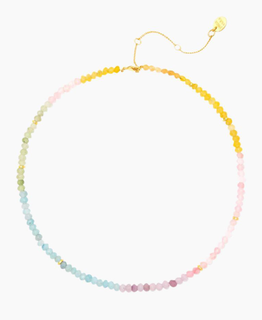 Unleash your inner luck with the Ombre Rainbow Bead Choker, featuring a vibrant string of quartz rondelle beads in a range of hues.